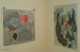 | Frunck målar flödigt i akryl på papper och duk Färgskalorna är vilsamma och verken har en flytande, nästan akvarellisk karaktär. Det är nästan uteslutande abstrakt, men får mig att tänka på vattendrag, liksom på Orienten och Frunck berättar själv att en Indien-resa för länge sedan varit inspirerande. Min egen upplevelse av just Indien känns dock "hetare" och "mustigare", medan detta snarare får mig att tänka på kinesiska trädgårdar eller min uppfattning om Japan, utan att ha varit där. |