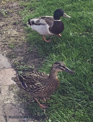 Greta och jag konstaterade igår att änderna som bor i buskarna på gården verkar ha kontorstid. De går ned till Jonebergsparken, tvärs över gatan, vid 9 och kommer hem till gården vid 17.30.
